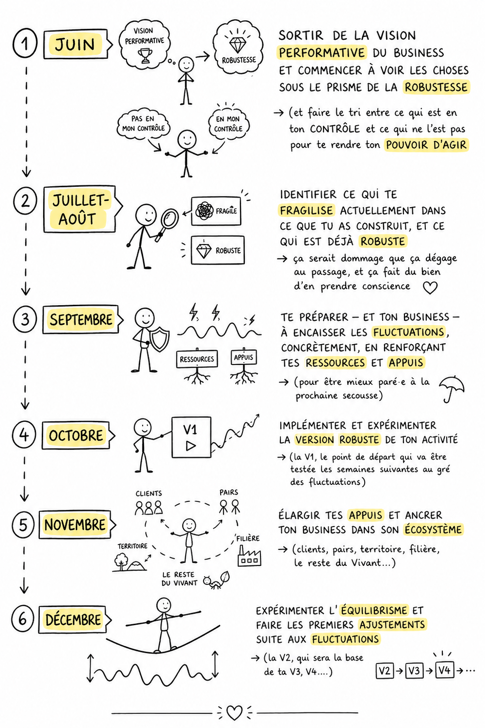 Proposer des repères pratiques pour t’aider à construire un business qui tient dans un monde instable, sans accélérer, sans t’abîmer, et sans renoncer à ta manière unique d’entreprendre.