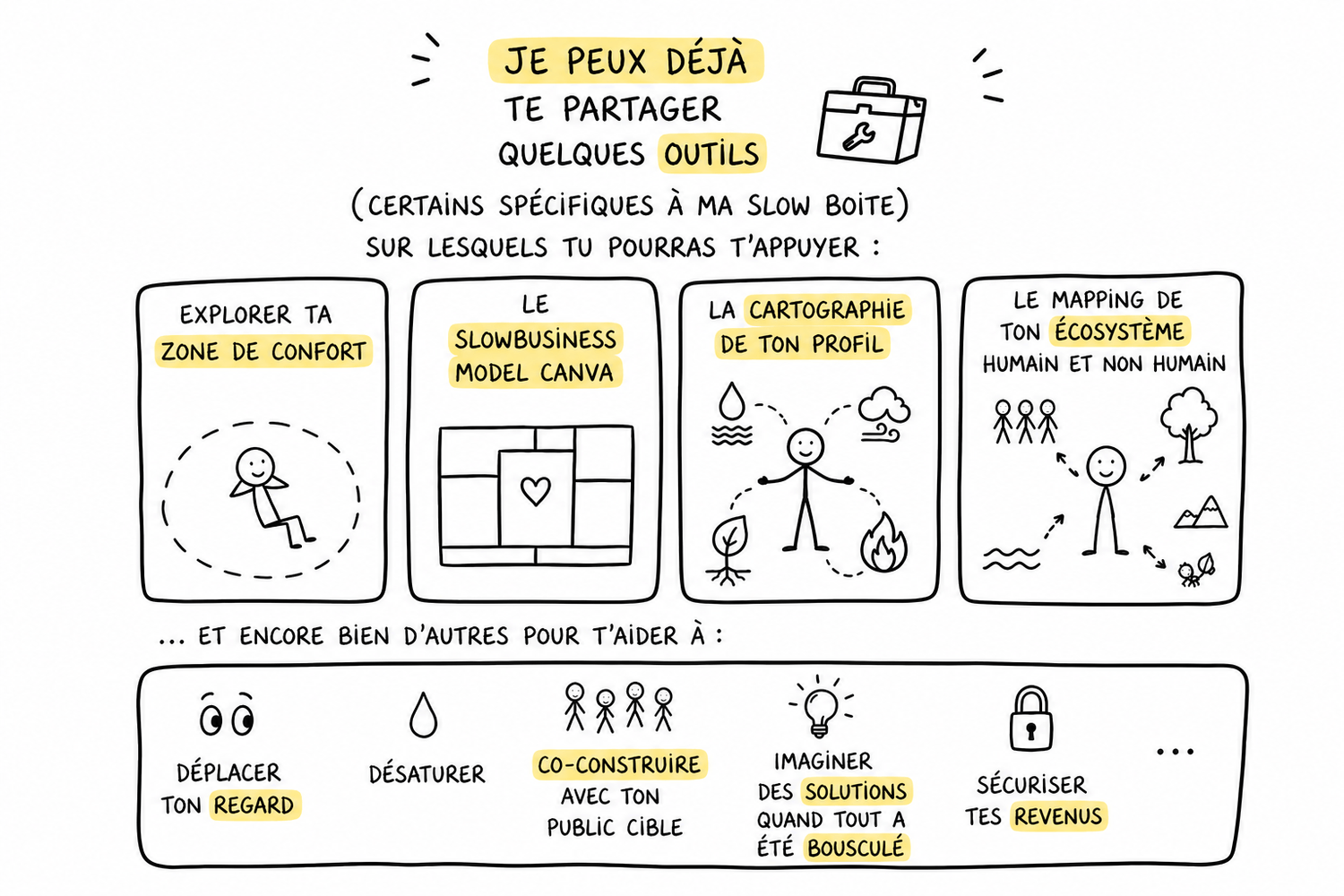 Depuis 2021, j’ai accompagné avec Ma Slow Boite des centaines d’indépendant·es à construire une activité plus sereine, plus stable et plus respectueuse de leur rythme, grâce au slowpreneuriat.